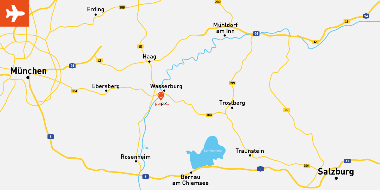 Wir befinden uns fast Mittig zwischen München und Salzburg, Mühldorf und Rosenheim. Am besten erreichen Sie uns über die B15 oder die B304.