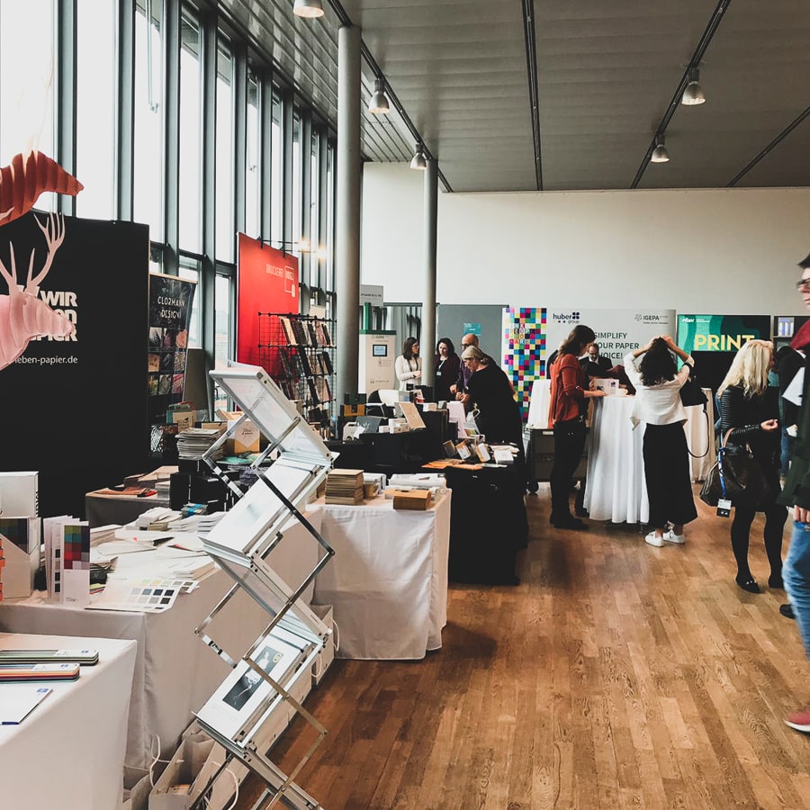 Zwischen den Vorträgen war immer wieder genügend Zeit, um die Aussteller an Ihren Ständen zu besuchen, Erfahrungen auszutauschen und Kontakte zu knüpfen. Besonders interessant und sogar faszinierend waren selbstverständlich die einzigartigen Ausstellungsstücke. Hier gab es wirklich alles zu sehen – von hochwertigen Papieren über tolle Verpackungsideen bis hin zu allen möglichen Arten an Veredelungsformen.